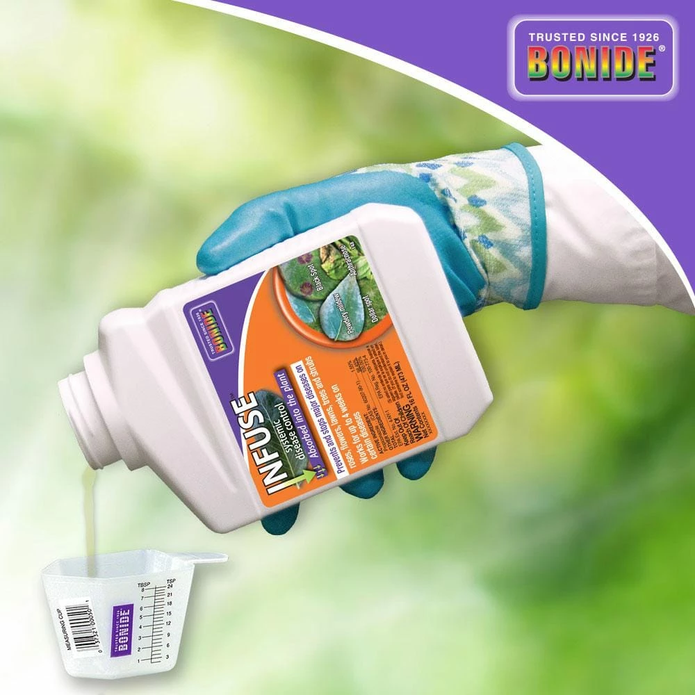 BONIDE Infuse prevents and stops major disease on listed roses, flowers, lawns, trees, and shrubs. It’s powerful systemic protection won’t wash off and lasts up to 1 month on certain diseases. Proven to encourage turf rooting.