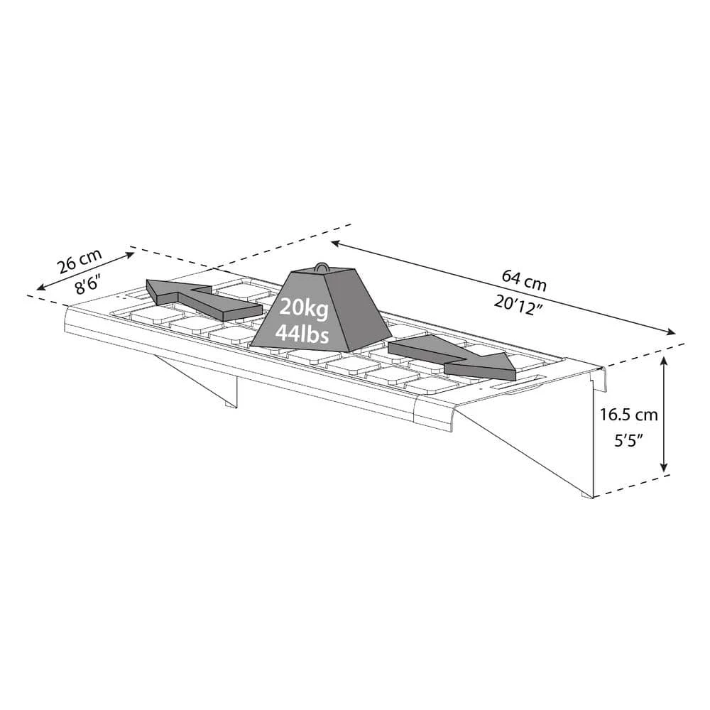 - Each shelf supports up to 20kg/44 lbs. of evenly distributed weight