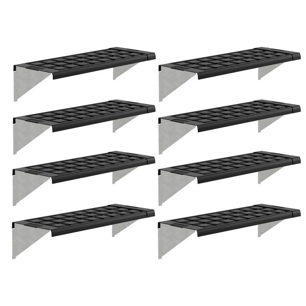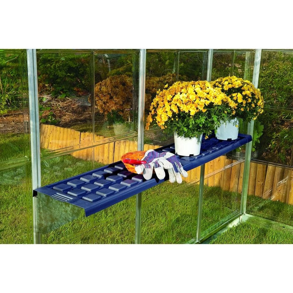 Accessorize your Palram – Canopia greenhouse with this four shelf kit. Save floor space and make your nursery as functional as possible. These shelves are constructed from easy-to-clean PVC plastic and galvanized steel brackets and fasteners. Each shelf can support up to 20kg/44 lbs. and easily mounts on to your greenhouse frame. These shelves can be quickly dismounted to hose down any excess plant and soil remnants that may collect in the underlying channels.