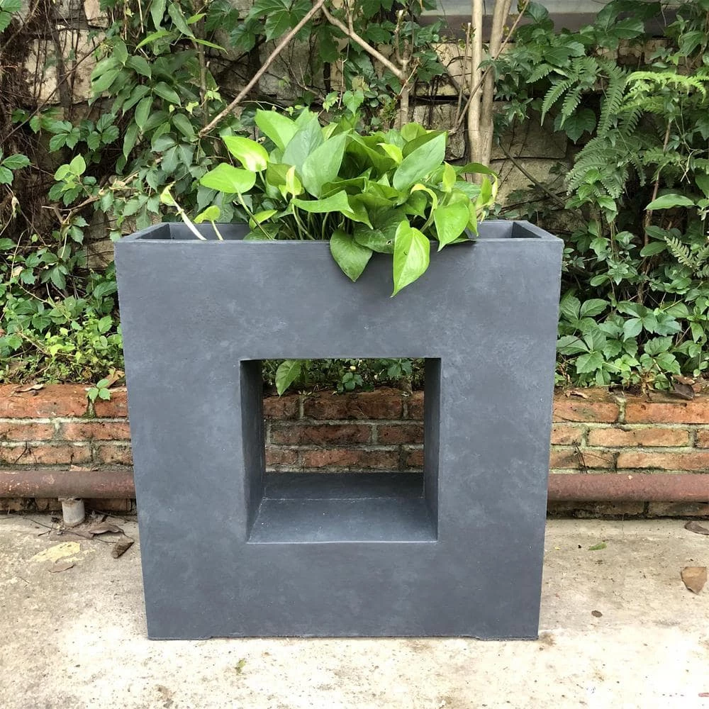 This large horizontal window box planter is a must have in a modern landscape design. It is a hot and trendy piece that can be used as a focal point to draw attention to any given area. Dress it up with your most charismatic vibrant plant for a more dramatic effect. Made of Lightweight concrete through an ecofriendly manufacturing process. This composite material has all the advantages of concrete such as strength, durability, weather and damage resistance, yet much easier to move around due to its lighter weight.