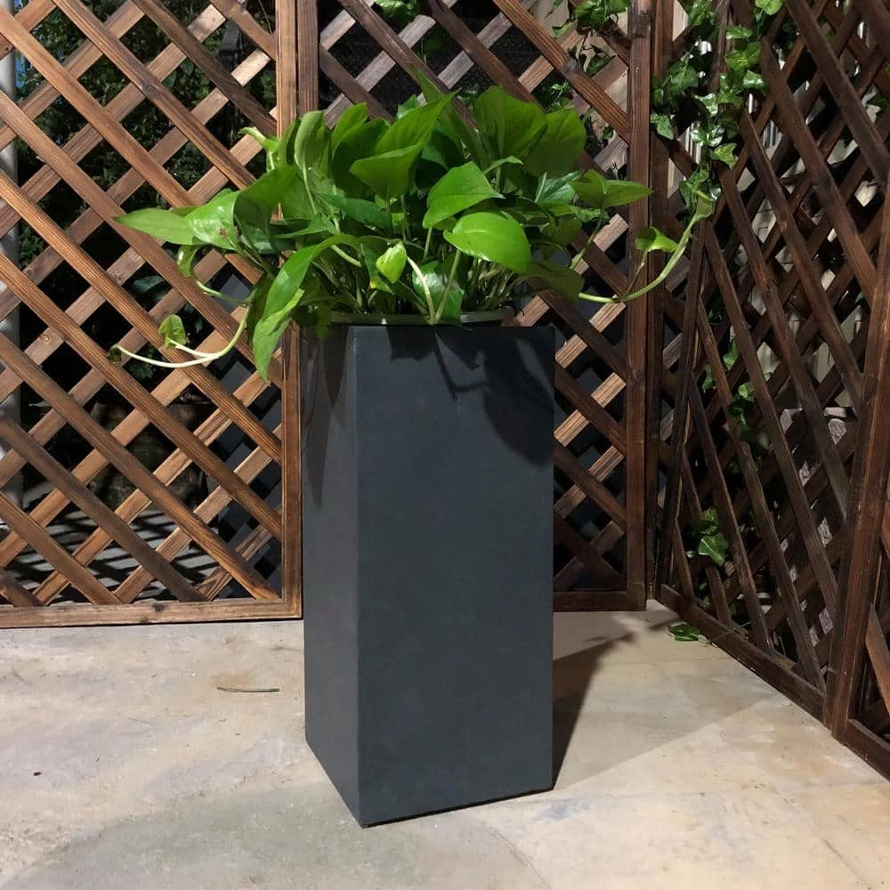 These tall concrete planters are the best fit for modern designs. They feature clean angles and pure cement finish that will add refinement to your favorite space. Use them with tall plants for a dimensional effect. Made of Lightweight concrete through an ecofriendly manufacturing process. This composite material has all the advantages of concrete such as strength, durability, weather and damage resistance, yet much easier to move around due to its lighter weight.