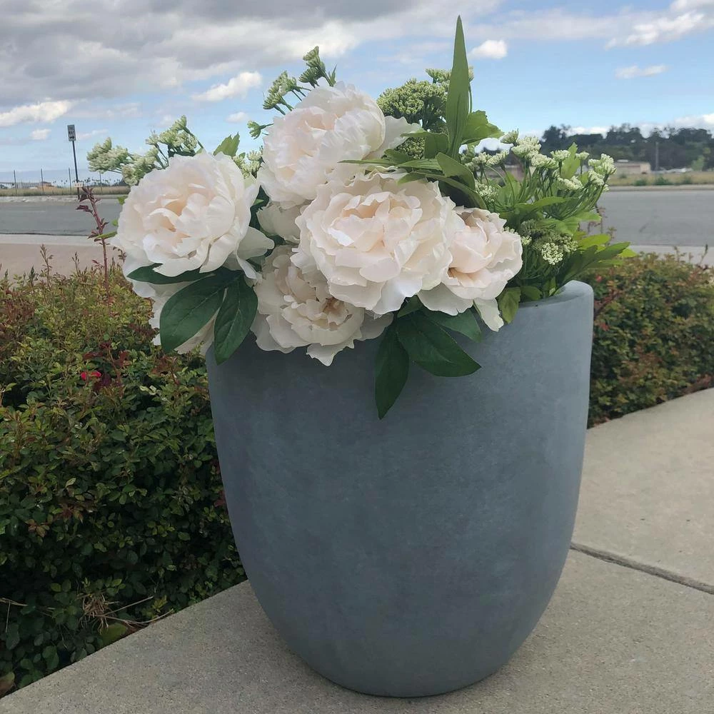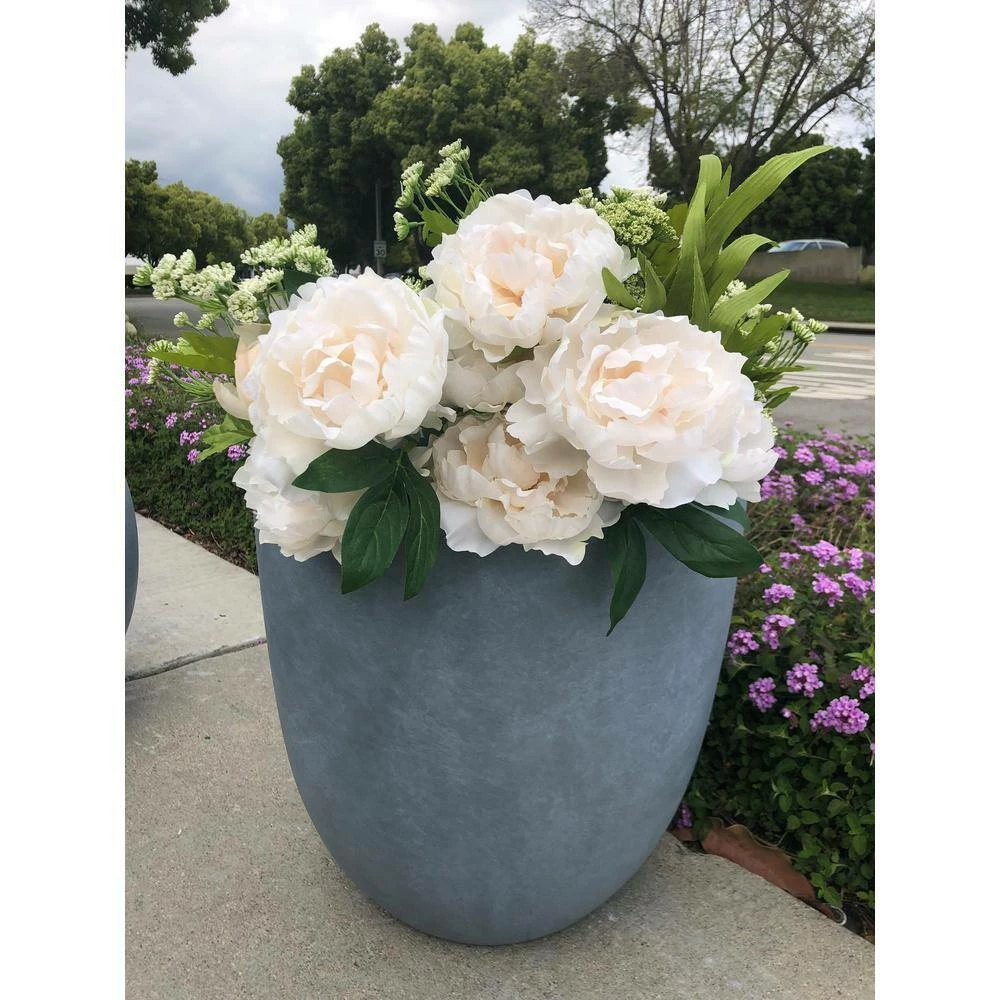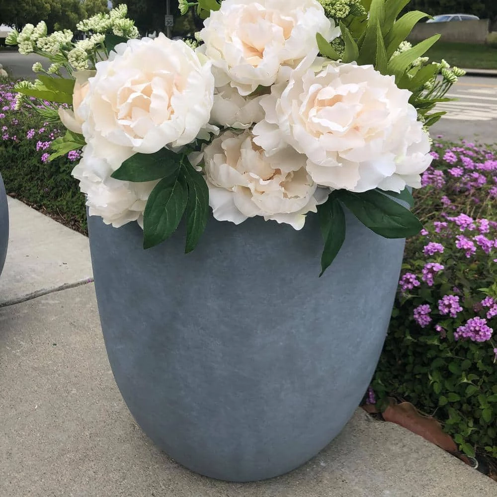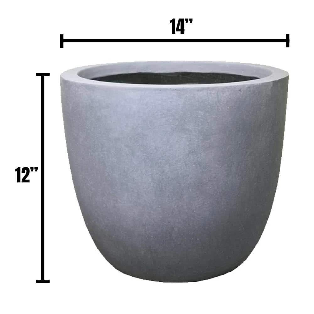 The smooth lines and round shape of these planters will help you maintain a modern design throughout your space. You cant go wrong with the grey finish as it blends well with any decor. They Can be used individually, as a set or in a row to promote unity. Made of Lightweight concrete through an ecofriendly manufacturing process. This composite material has all the advantages of concrete such as strength, durability, weather and damage resistance, yet much easier to move around due to its lighter weight.