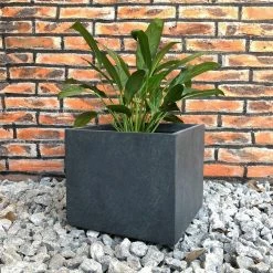 DurX-litecrete Small 9.8 in. x 9.8 in. x 9.8 in. Granite Lightweight Concrete Modern Square Planter