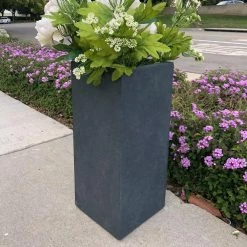 DurX-litecrete Small 8.7 in. x 8.7 in. x 19.9 in. Granite Lightweight Concrete Tall Planter