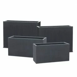 Vasesource 23.6 in. x 9.8 in. x 31.5 in. FiberStone Matte Black Vertical Line Rectangular Planter