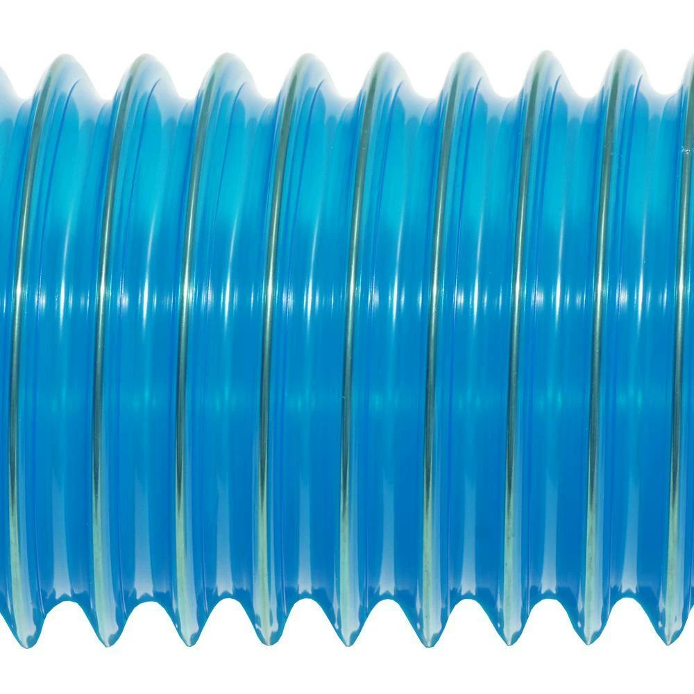 The PVC Flexduct General Purpose Blue is a versatile ducting hose designed for those who need ultra-flexible duct work at an affordable price. This flexduct is made from a translucent blue PVC material, providing a solid hose which has a high range of flexibility. The PVC material is sturdy and allows the hose to keep its shape, it also has a steel wire helix winding through the body to add an extra level of reinforcement. Its high bend radius allows it to twist and contort into tight spaces to provide effective air movement, even in small or unusual settings. The General Purpose Flexduct can meet your ducting needs, even if it is exposed to moisture and chemicals. Its PVC body lends a moderate level of resistance to these substances, allowing the hose to provide effective air and dust transfer, even when it comes into contact with them. This flexible hose can also operate comfortably in temperatures of 20° to 160°F. It comes in standard lengths of 12 ft. and 25 ft. when fully stretched, but can be compressed down to a fraction of that size making it extremely easy to transport and store. The bright blue coloring makes the hose highly visible, while having clear hose walls allows you to quickly and easily identify and remove blockages, making sure that minor issues do not derail your project. They come in a range of inner diameter sizes to suit a large number of requirements, starting at a 1 in. inner diameter size and ranging up to 12 in.