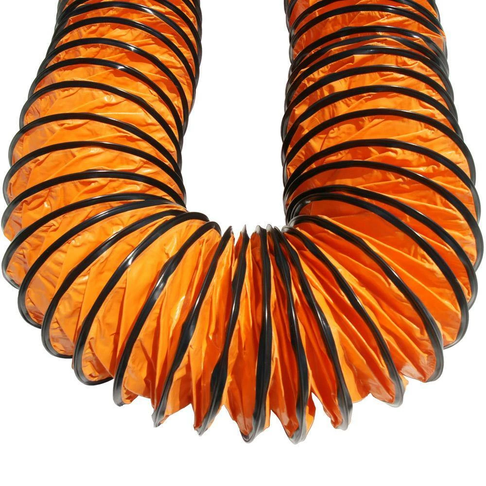 The Air Ventilator orange is the ultimate flexible ducting solution for wide ranging air movement applications. Tough enough for industrial applications and affordable enough for residential use. Air Ventilator also has a temperature tolerance of -20°F to +180°F. It can be used in anything from dehumidifier ducting to HVAC, portable air conditioning, smoke and hot air transportation, as well as all-purpose ventilation. These hoses are lightweight, constructed from a PVC-coated polyester fabric, making them exceptionally tough and durable. The body of the Air Ventilator is reinforced with a spring steel helix, which gives the duct work a higher degree of strength and helps it to keep its shape when flexed and put under pressure. The external wear strip combined with its rugged coating protects the hose from excessive wear when it is dragged across the ground and ensure that it remains effective for the long term. Coming in standard lengths of 25 ft. when fully stretched, Air Ventilator hoses are extremely flexible and compress easily. A 25 ft. hose can be retracted down to just 3 ft. for tight-bending contortion when in use which allows for easy transportation and storage the rest of the time. This hose comes in a variety of sizes ranging from a 4 in. I.D. to a 24 in. I.D. Each end of the Air Ventilator is also fitted with belted cuffs, giving you a built-in quick and easy installation option without the need for clamps.