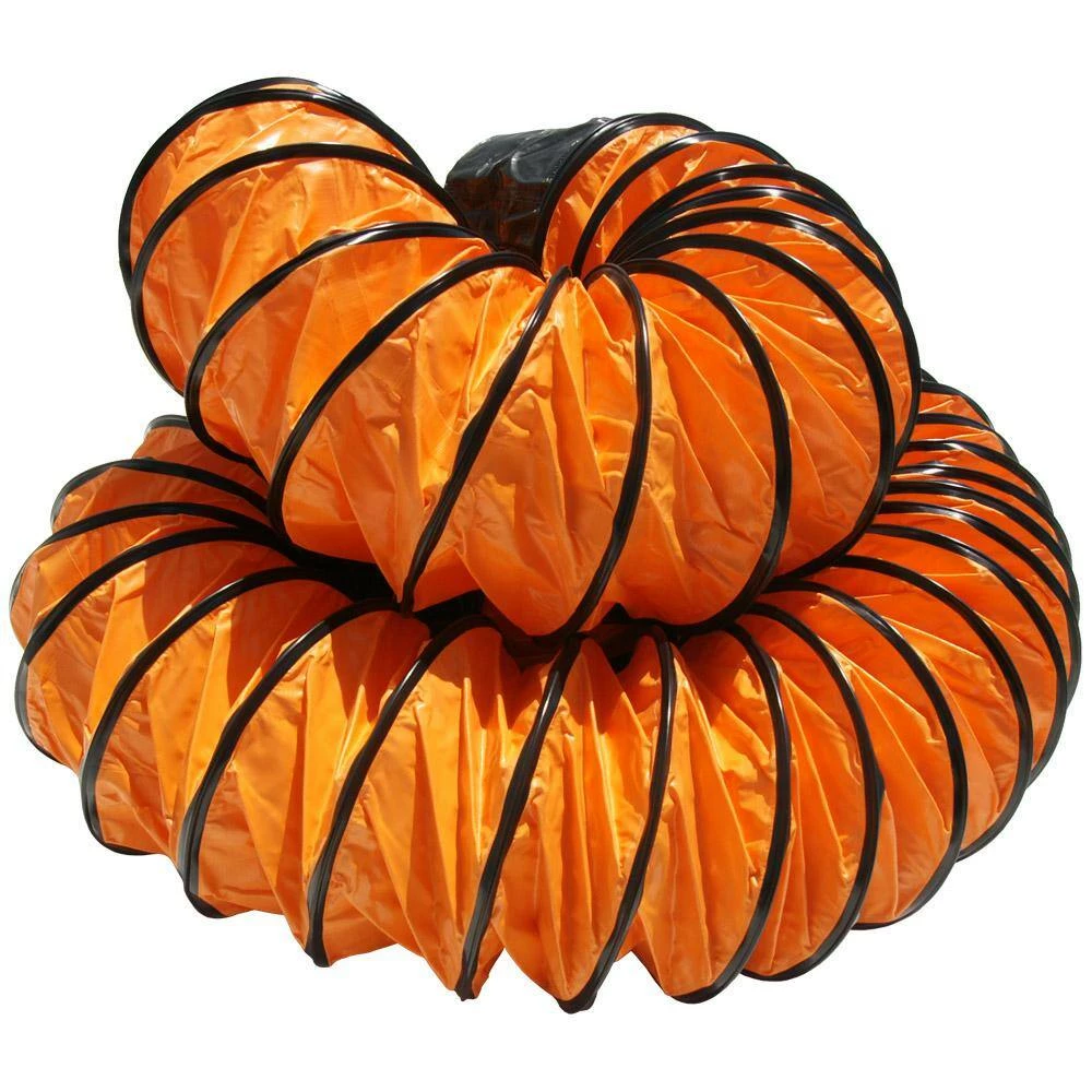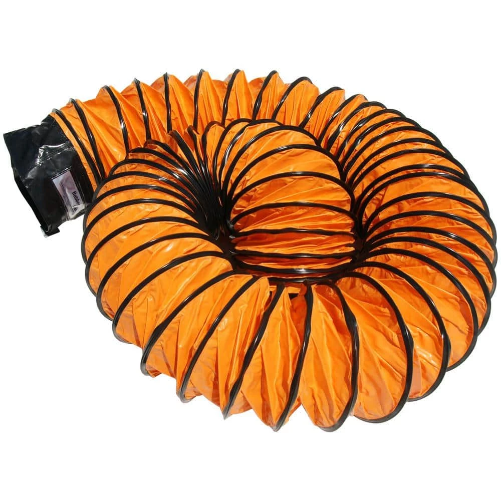 The Air Ventilator orange is the ultimate flexible ducting solution for wide ranging air movement applications. Tough enough for industrial applications and affordable enough for residential use. Air Ventilator also has a temperature tolerance of -20°F to +180°F. It can be used in anything from dehumidifier ducting to HVAC, portable air conditioning, smoke and hot air transportation, as well as all-purpose ventilation. These hoses are lightweight, constructed from a PVC-coated polyester fabric, making them exceptionally tough and durable. The body of the Air Ventilator is reinforced with a spring steel helix, which gives the duct work a higher degree of strength and helps it to keep its shape when flexed and put under pressure. The external wear strip combined with its rugged coating protects the hose from excessive wear when it is dragged across the ground and ensure that it remains effective for the long term. Coming in standard lengths of 25 ft. when fully stretched, Air Ventilator hoses are extremely flexible and compress easily. A 25 ft. hose can be retracted down to just 3 ft. for tight-bending contortion when in use which allows for easy transportation and storage the rest of the time. This hose comes in a variety of sizes ranging from a 4 in. I.D. to a 24 in. I.D. Each end of the Air Ventilator is also fitted with belted cuffs, giving you a built-in quick and easy installation option without the need for clamps.