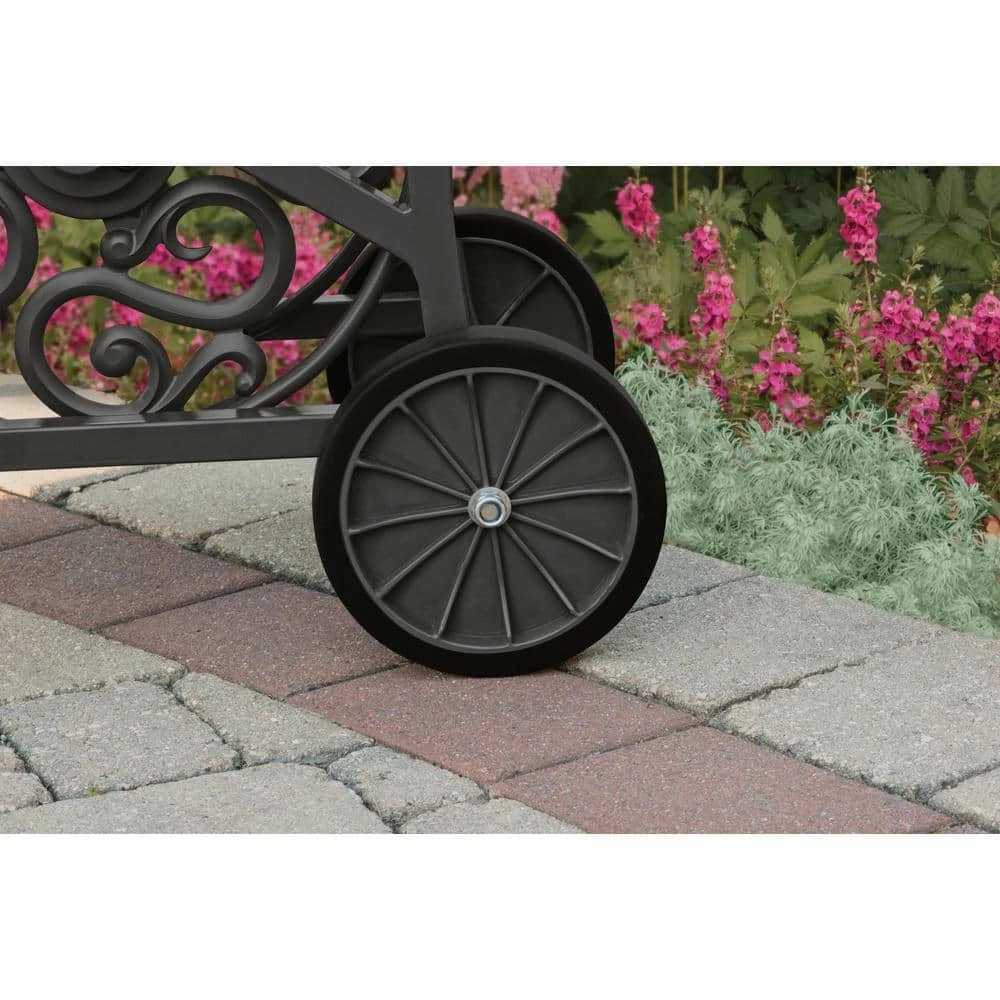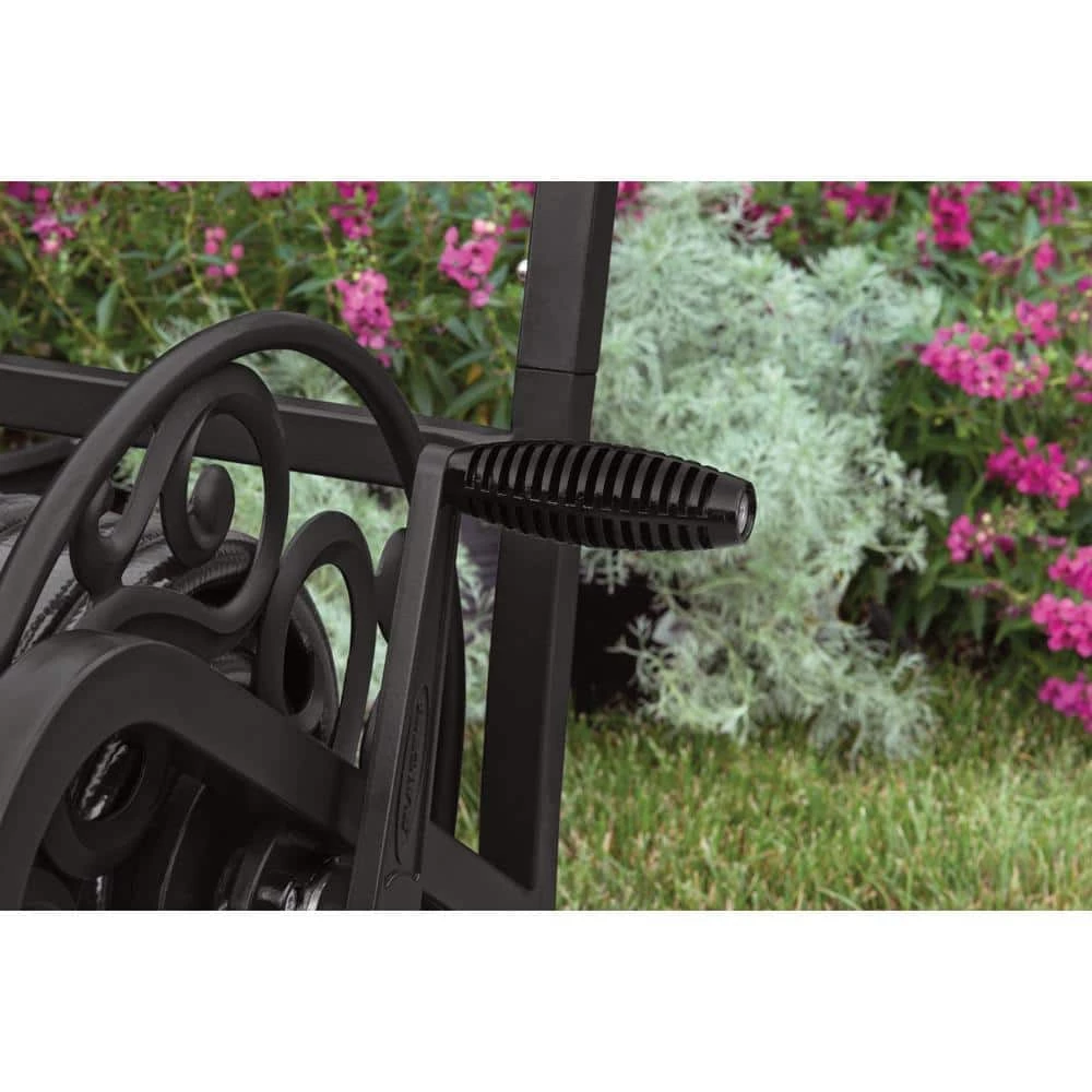 For durability and portability, the Decorative Metal Hose Cart is the perfect addition to any garden space. This hose reel uses aluminum connections that will not to leak under normal use and includes a durable metal crank with swivel grip for easy winding. The attractive metal design of the cart lets you transport your hose in style and seamlessly blends in to your backyard when not in use.