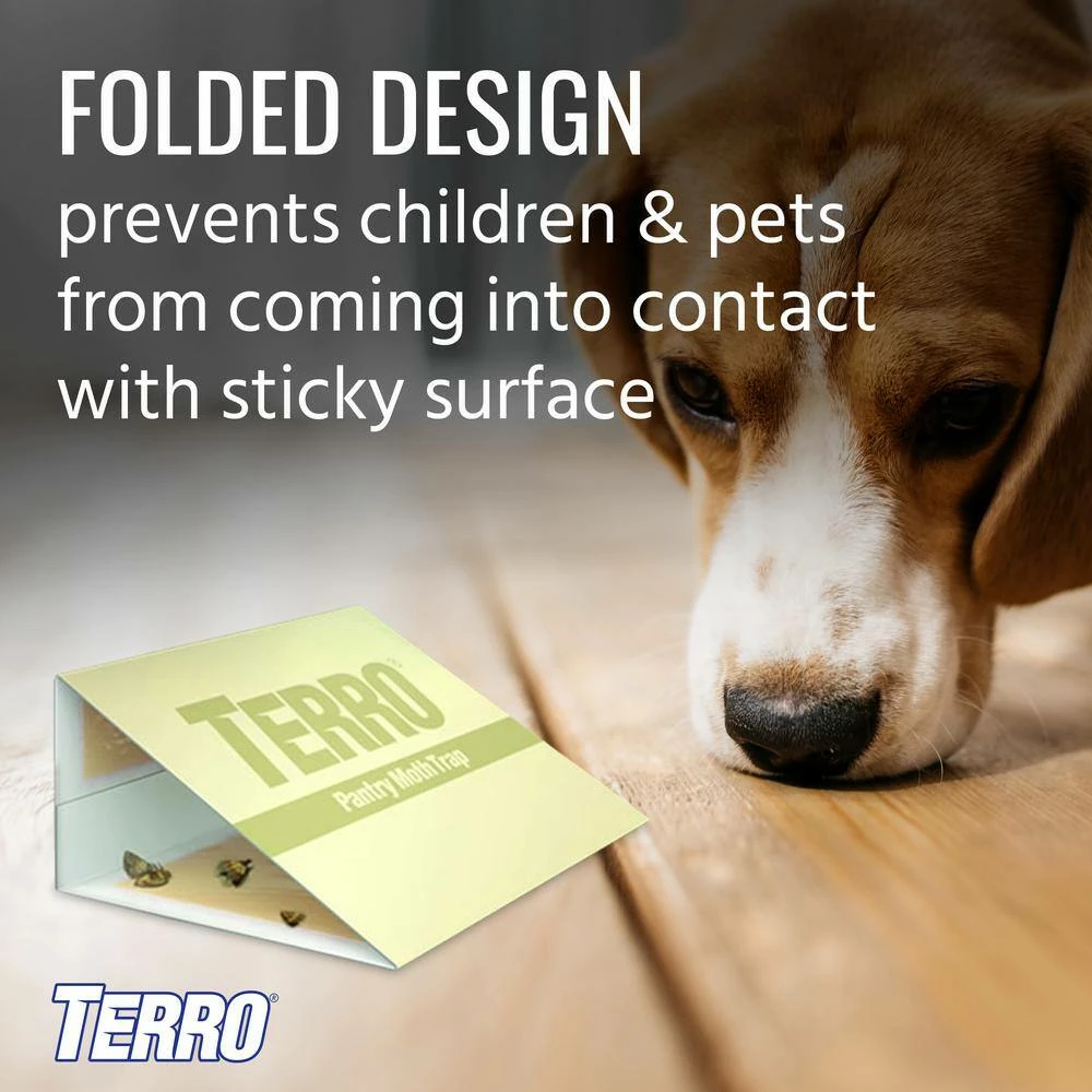 Keep grain-loving pests out of your pantry with safe TERRO Pantry Moth Traps. These easy-to-use, non-toxic glue traps attract and kill the most common moths. The moth traps contain a powerful pheromone lure that attracts moths to the trap’s sticky surface where they get stuck and die. Each TERRO Pantry Moth Trap package includes 2 glue traps and 2 individually wrapped pheromone lures. Use 1 lure for each trap by gently pressing the lure into the center of the trap and then place the trap in areas where moths are observed swarming. for best results, replace the traps every 3-months or sooner if the trap becomes dusty or full of moths.