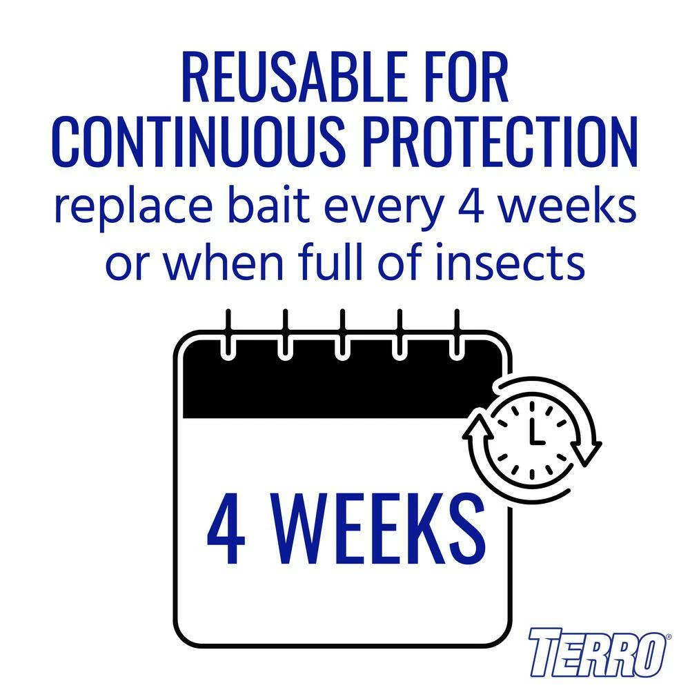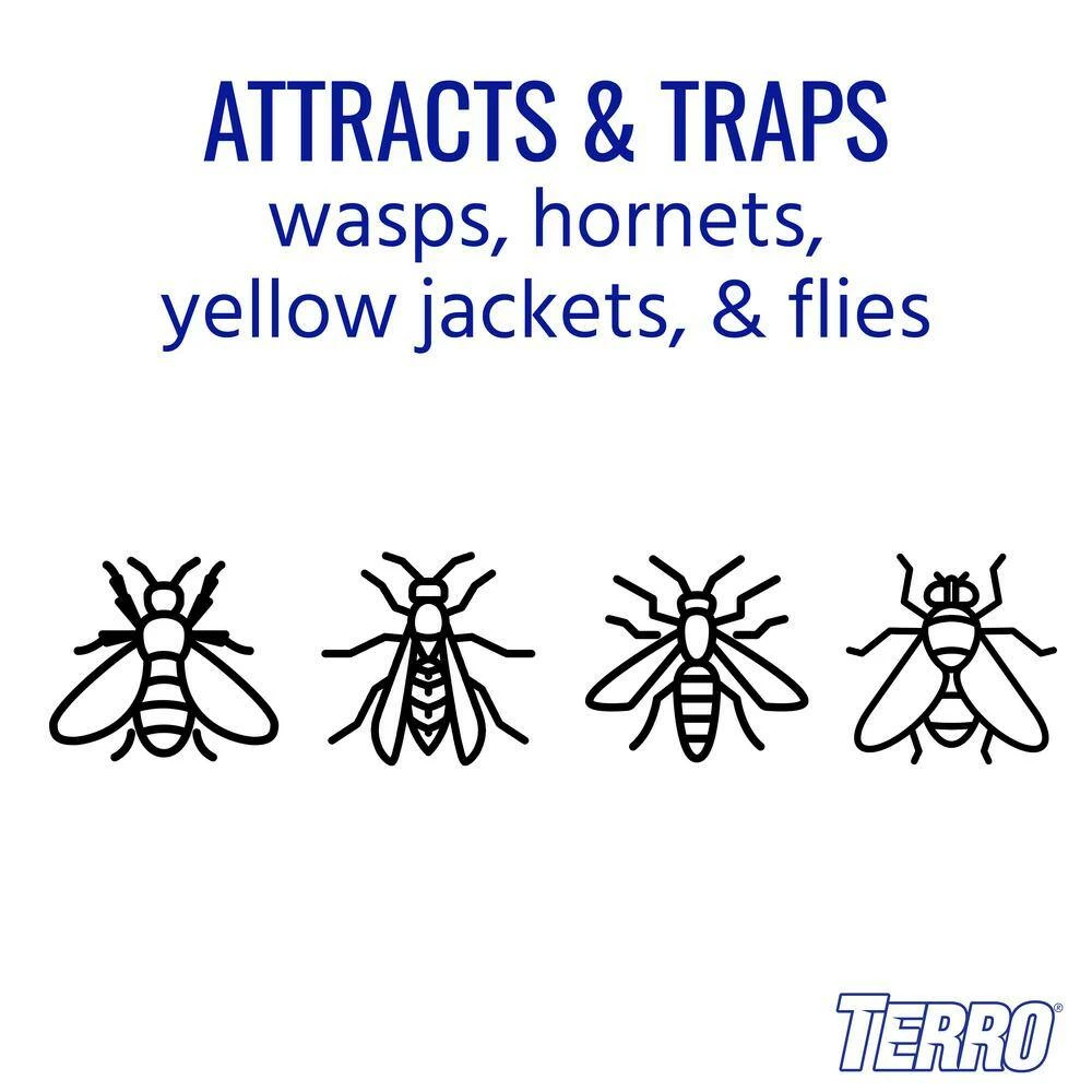 Wasps, yellow jackets, hornets, and not to mention flies, can turn outdoor festivities sour in no time. With the Terro Wasp and Fly Trap, you can defend your property against these flying pests and get back your peace of mind. Using a unique, dual-purpose bait, this trap attracts and kills both pain-inflicting insects such as wasps, hornets and yellow jackets, while also targeting nuisance flies. However, it wont lure in beneficial pollinators such as honeybees and bumblebees. Unlike many traditional fly traps which feature an unpleasant odor, Terro Wasp and Fly Trap bait is stink free. For added effectiveness, this trap boasts a Bug Lock Lid, which prevents insects from escaping after they have entered the trap. For your convenience, this trap is also reusable to allow for continuous insect protection. When the bait bag is full, simply throw it out and insert a new 1 into the trap.