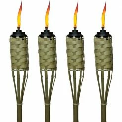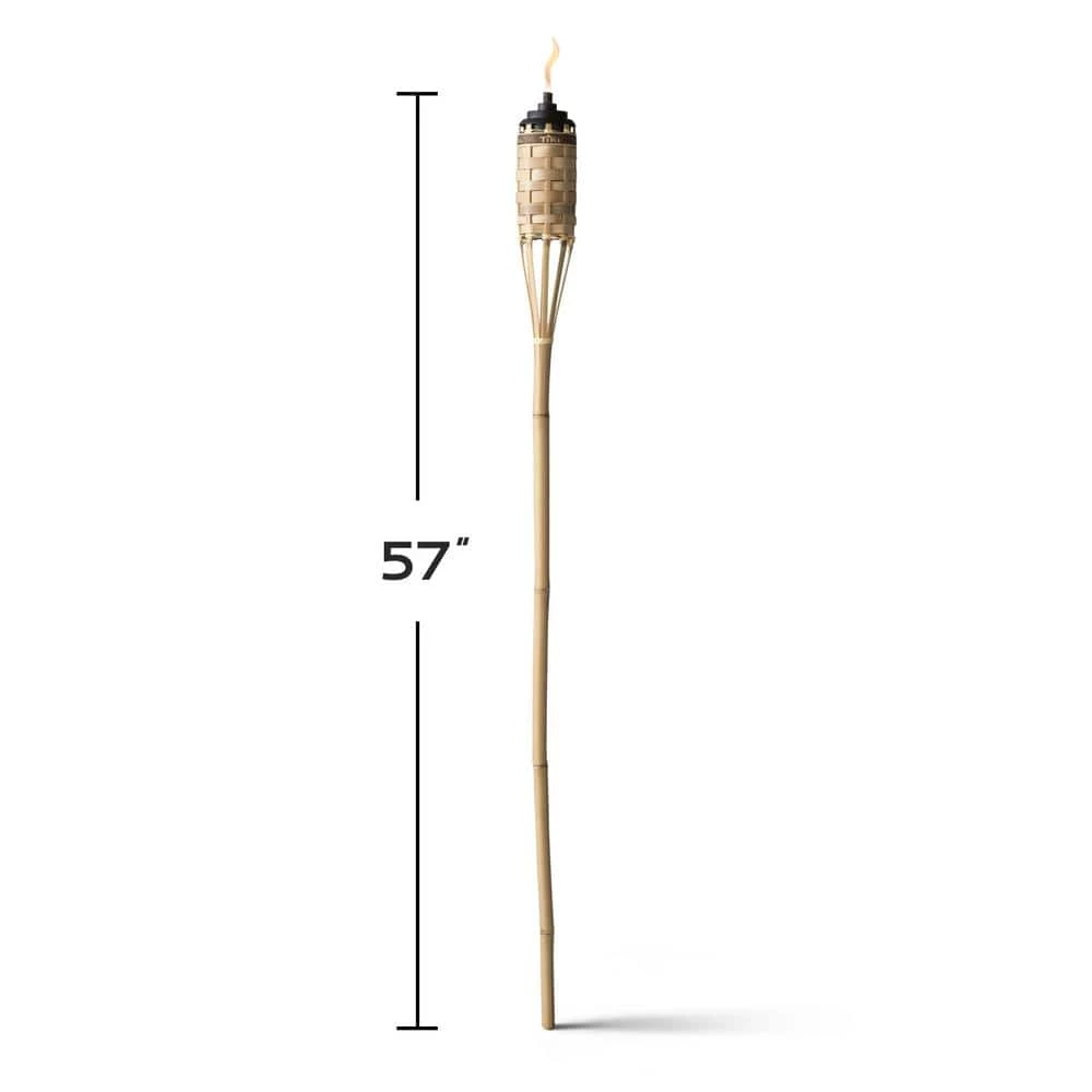 Natural flame outdoor torches help set the mood and add fun, decor and ambiance to your backyard or patio. Easy-to-use, weather resistant bamboo brings a longer-lasting bamboo torch and touch of relaxed style and flare to any outdoor space. These TIKI Brand Weather Resistant Bamboo Torches are 6x more protective than non-treated TIKI Brand bamboo torches. They feature an island-inspired design crafted from all-natural, renewable, treated bamboo and stand 57 inches tall. Each TIKI Brand Weather Resistant Bamboo Torch comes complete with a 12-ounce Easy Pour wide mouth canister with flameguard, long-lasting fiberglass wick and a snuffer to extinguish the flame when the evening is over. For proven mosquito repellency*, use with TIKI Brand BiteFighter Torch Fuel, and enjoy up to 5 hours of burn time with each 12-ounce fill. TIKI Brand BiteFighter Torch Fuel sold separately. *Based on studies using CO2-emitting mosquito traps which demonstrated over 50% reduction in captured mosquitoes compared to untreated controls. Use as directed. Efficacy may be affected by weather conditions, torch placement, and individual physical factors.